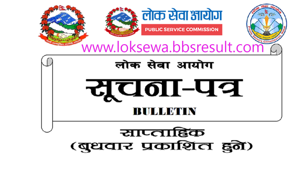 ( Public Service Commission ) Lok Sewa Aayog published various notices in loksewa Bulletin and gorkhapatra. Lok Sewa Aayog ( Public Service Commission ) Update Notice about Result, Lok sewa Exam, Appointment & Final Result & update details. ( Public Service Commission ) Lok Sewa Aayog Notice regarding Vacancy and Exam Routine Exam Center Interview and More.